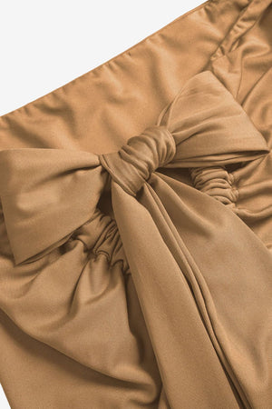 - Knot Detail: Decorative tie at the skirt’s hip complements the silhouette.