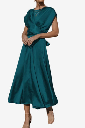 Women’s Satin Midi Dress Asymmetric Neckline Flowy Fit