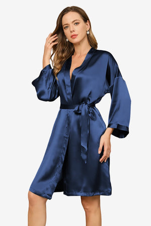 Women's Satin Short Robe with 3/4 Sleeves and Belt