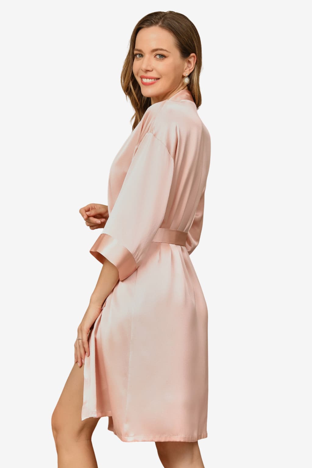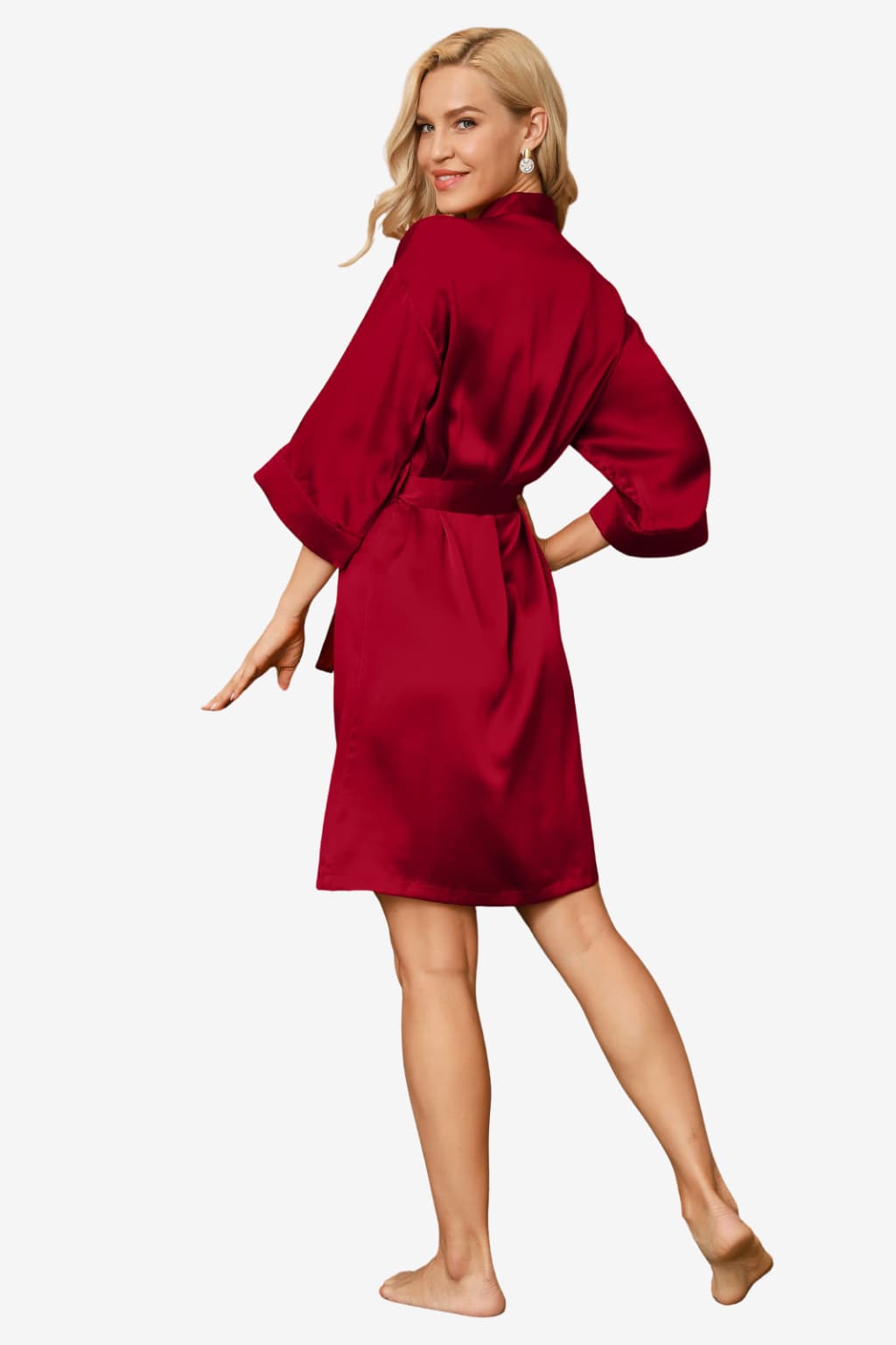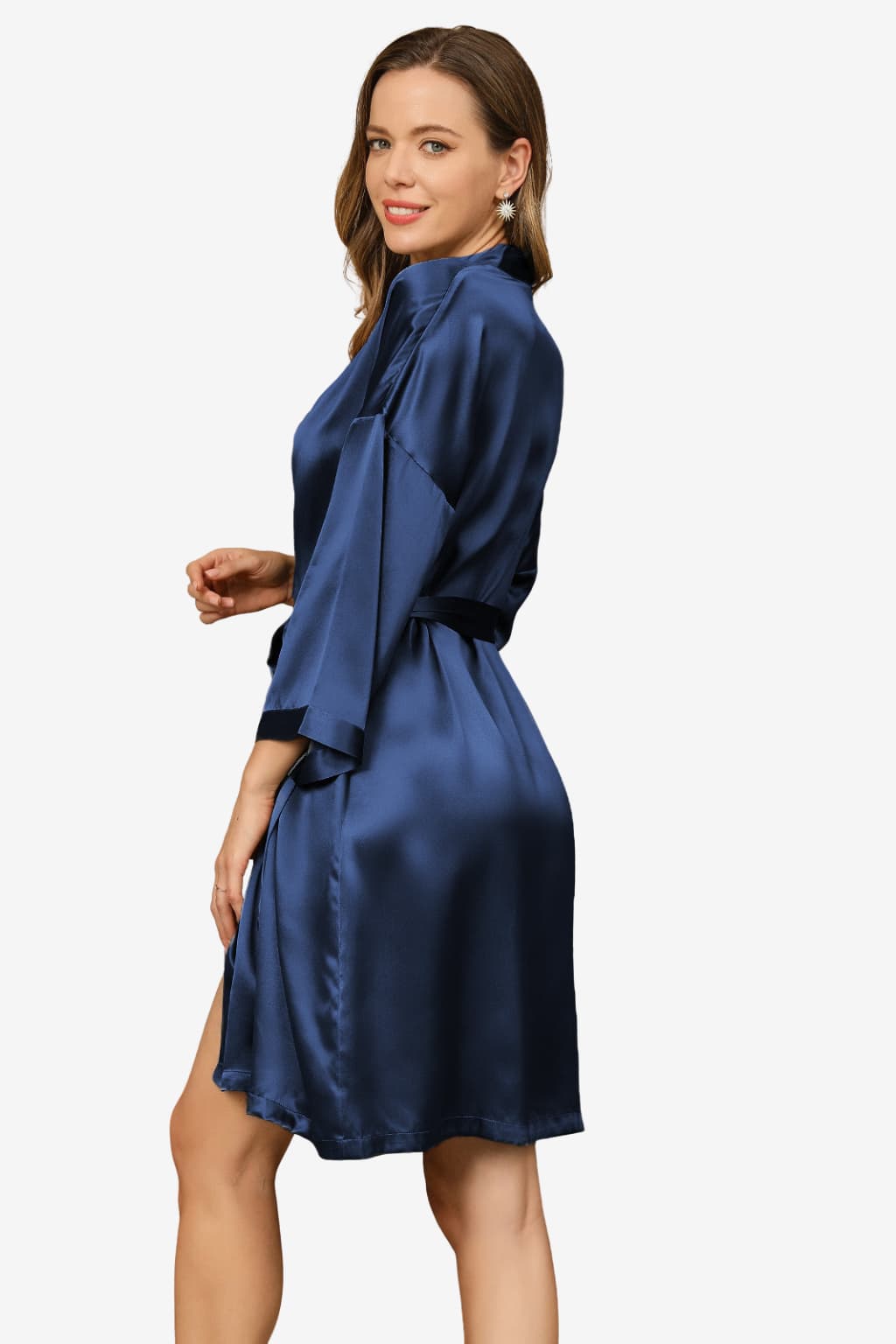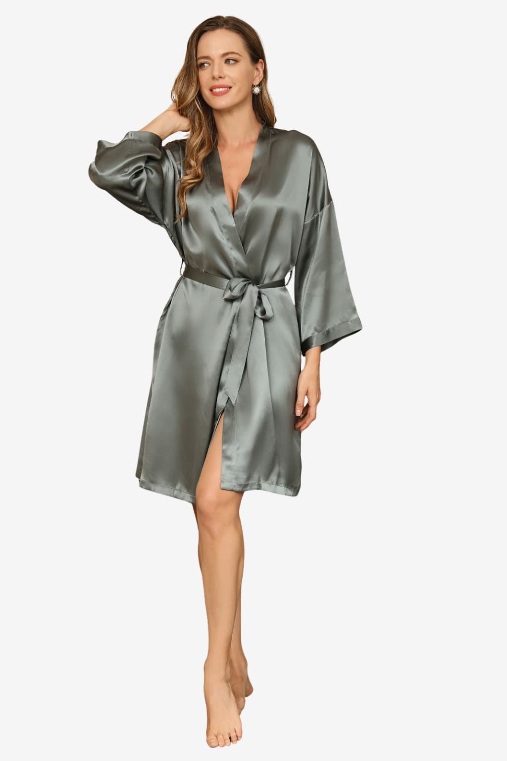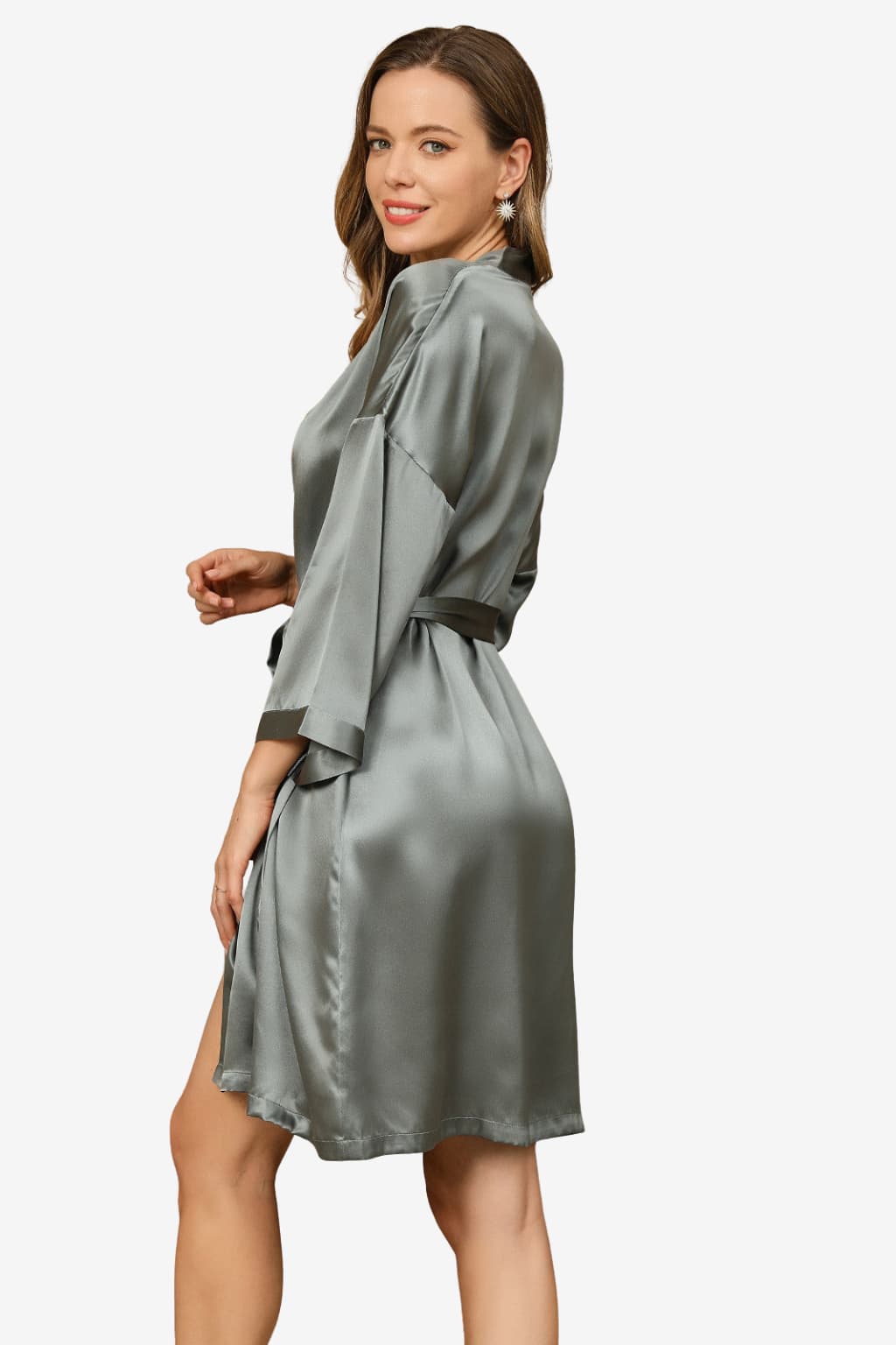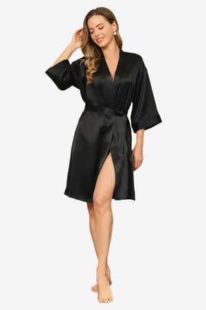 Short Satin Robe with 3/4 Sleeves
