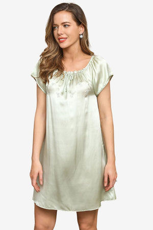 Women's Satin Short Sleeve Nightgown with Tie Neckline