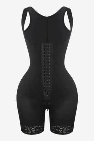 The Women's Seamless Bodysuit with Lace Trim is a full-body shaper that smooths and contours the torso, waist, hips, and thighs. Its stretchy fabric and adjustable features provide a tailored fit, suitable for daily wear or special occasions, ensuring a smooth look under clothing.- Customizable Fit: Adjustable hook-and-eye closure and straps adapt to various body types.