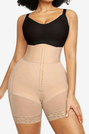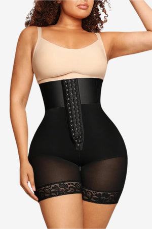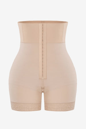 These high-waist shorts feature a continuous design intended to sit smoothly under clothing. With an extended rise and secure closure, they offer full midsection coverage with a uniform finish. Suitable for those looking for a fitted base layer beneath closer-fitting garments, these shorts provide consistent form and a neutral outline.- Adjustable high-rise design: Includes a triple-hook fastening system that offers multiple closure options for a stabilized midsection fit.