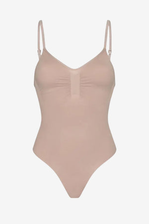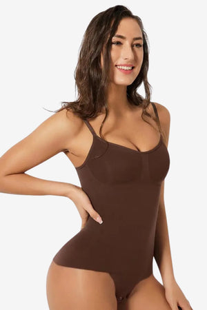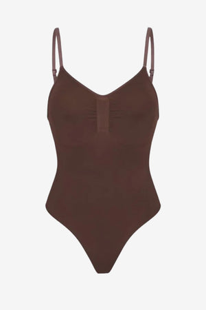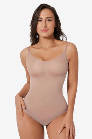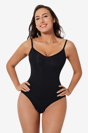 The Women's Seamless V-Neck Bodysuit is a sleeveless, stretchy thong-cut garment designed to fit closely to the torso. Its lightweight, seamless construction and adjustable fit suit various outfits, from casual to formal wear, for a smooth silhouette.- Adjustable Fit: Thin straps and snug torso adapt to different body shapes.