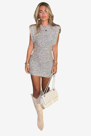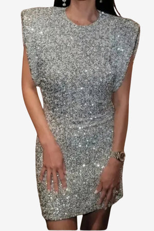 Women’s Sequin Bodycon Mini Dress Sleeveless Silver
