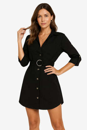 Women's Short Shirt Dress with Belt and Collar