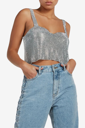Women’s Silver Sequin Crop Top Sleeveless Party Wear
