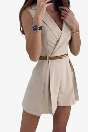 Women’s Sleeveless Belted Jumpsuit V-Neck Summer Fit