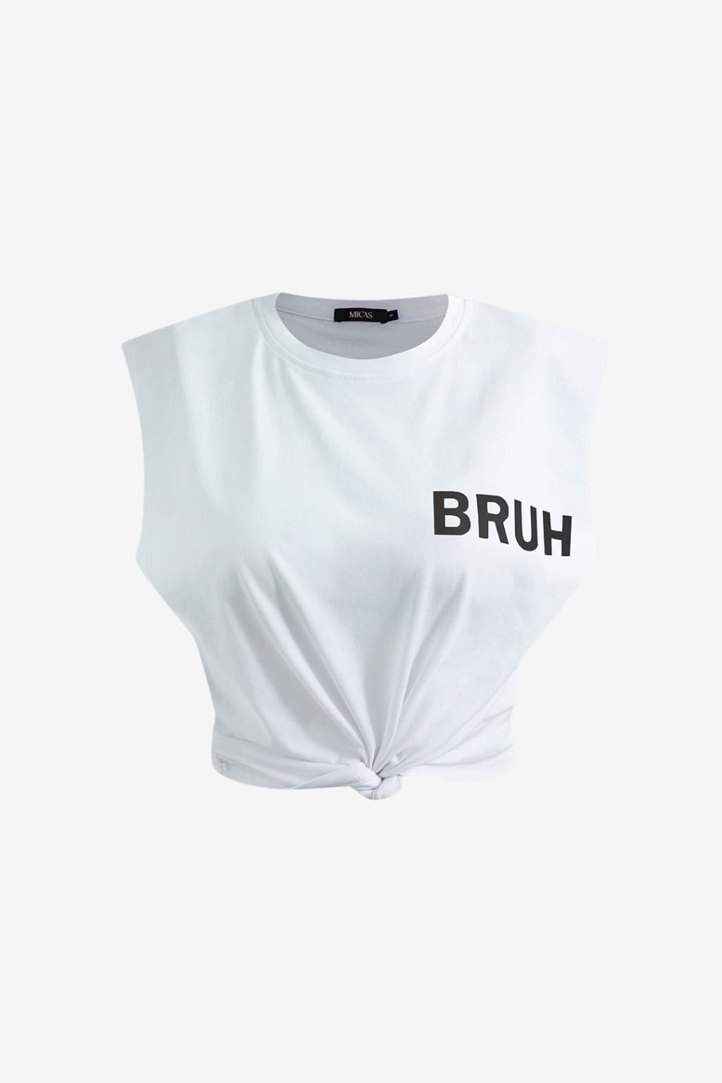 Women's Sleeveless Cropped T-Shirt with Bruh Print