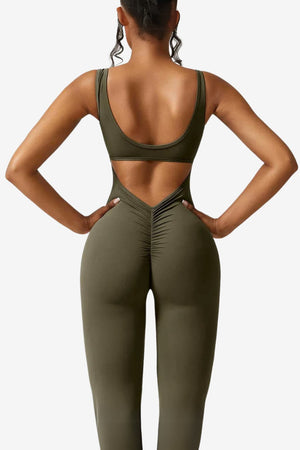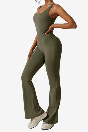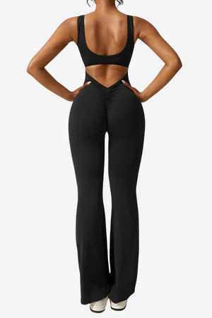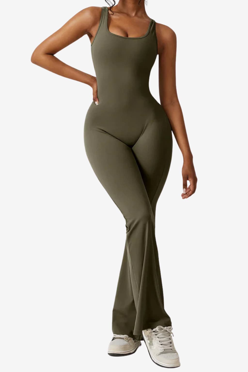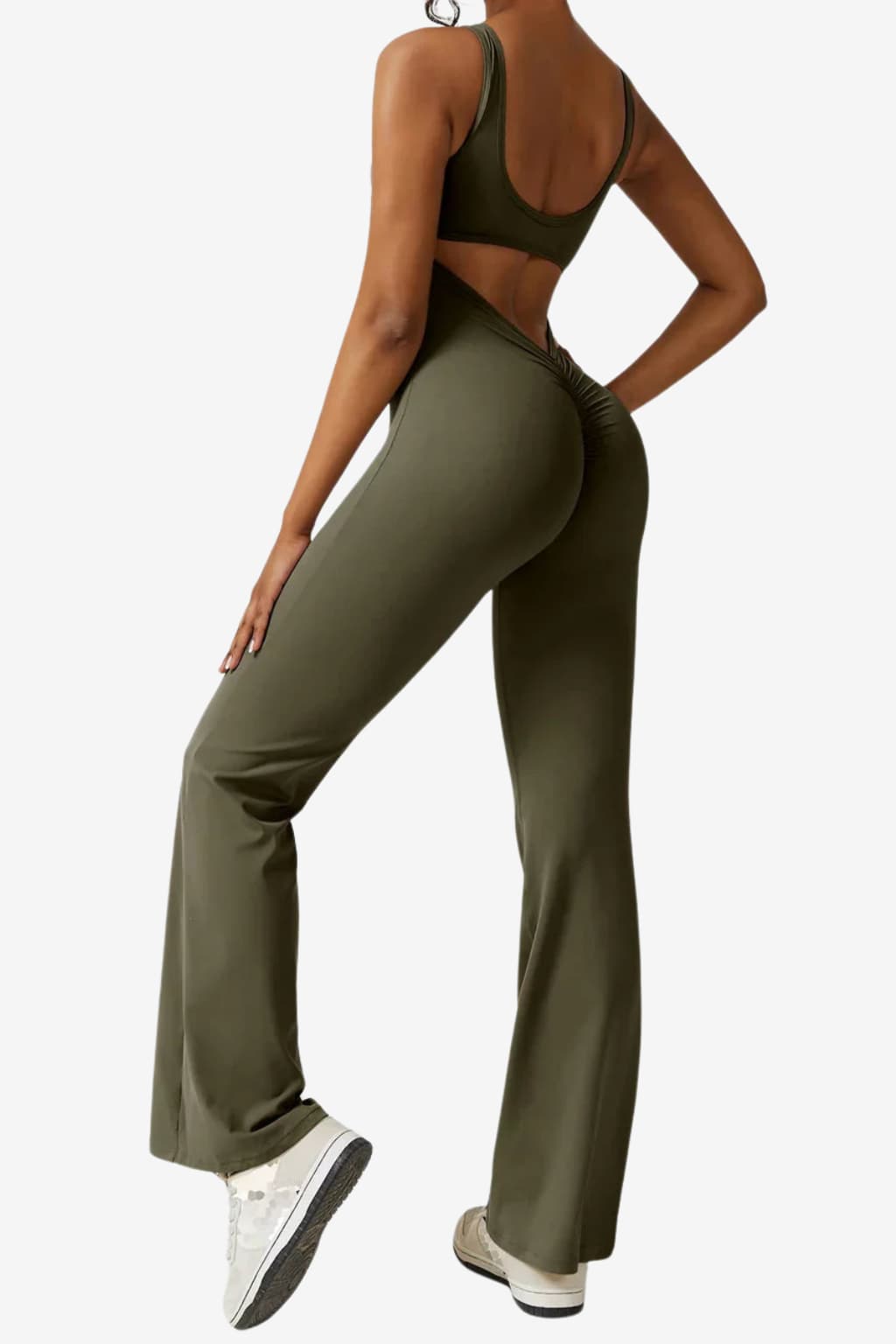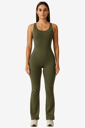 Women’s Sleeveless Flared Jumpsuit Stretch Fit V-Back