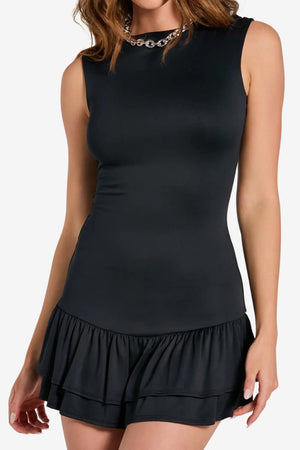 Women’s Sleeveless Mini Dress with Ruffled Hem Black