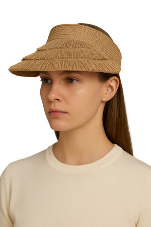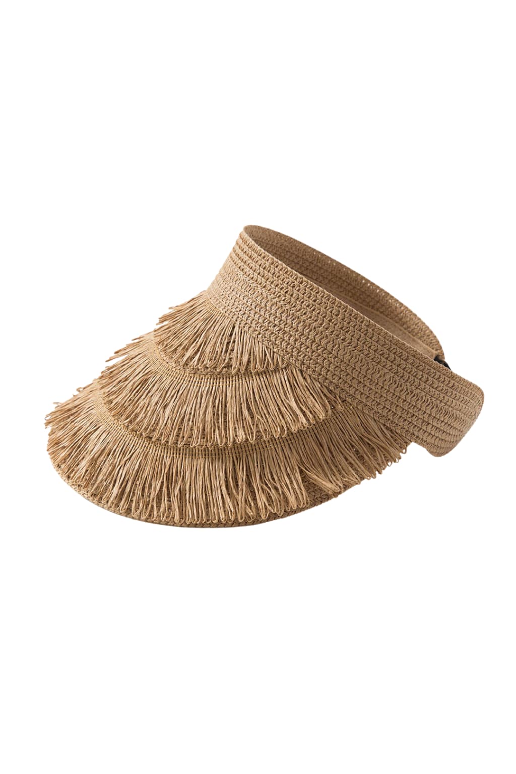 Women’s Straw Visor Hat with Fringe Brim Adjustable Fit