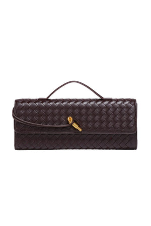 This women’s clutch bag features a patterned surface and a shaped exterior suited for structured outfits or formal settings. Its compact format is paired with a subtle metallic coating and an optional strap, offering multiple carrying methods. Designed for users seeking a streamlined item with a stable silhouette, it can be held by hand or worn over the shoulder.- Patterned exterior surface: Includes a textured outer layer that contributes to the bag’s overall dimensional appearance.