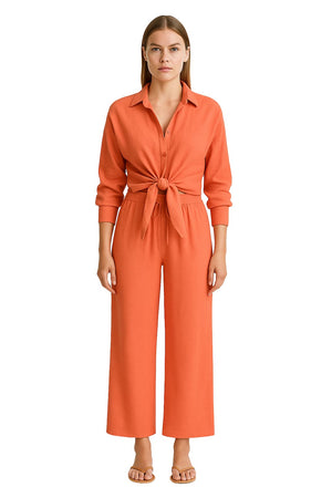Women’s Tie Front Shirt & Wide Leg Trousers Set