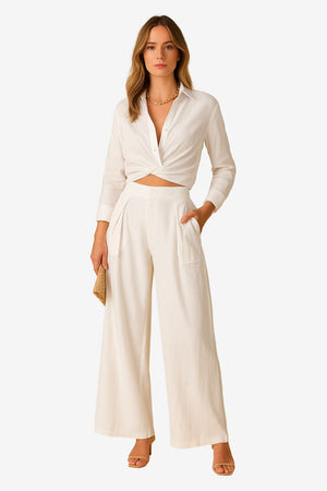 Two-Piece Set with Cropped Shirt and Wide-Leg Trousers