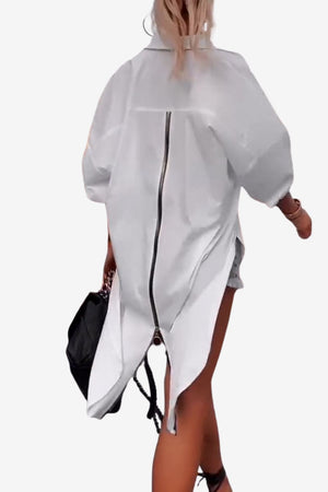 - Rear zip closure: Includes a back zip for secure fastening while maintaining a continuous front appearance.