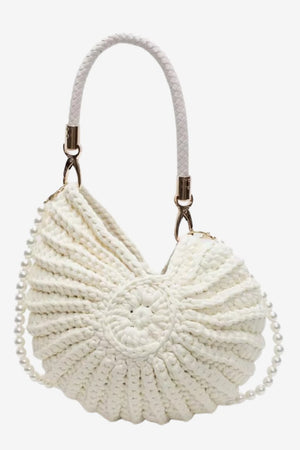 The Women's Woven Shell Cross is a crossbody handbag designed for vacation use. Its knitted texture and pearl-like embellishments form a distinctive appearance, suitable for women seeking a functional accessory to pair with casual or summer outfits. The structured weave ensures a consistent shape for everyday use.- Adjustable Strap: Crossbody strap modifies to fit various body types comfortably.