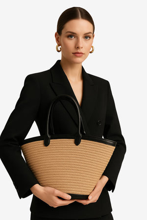 Woven Tote Bag with Structured Form and Textured Surface